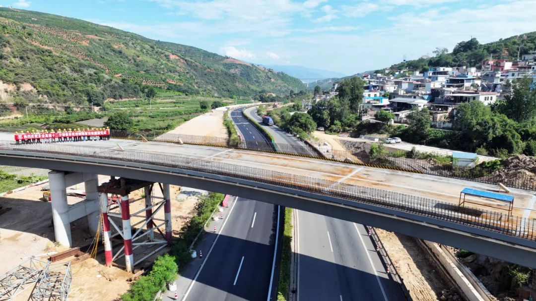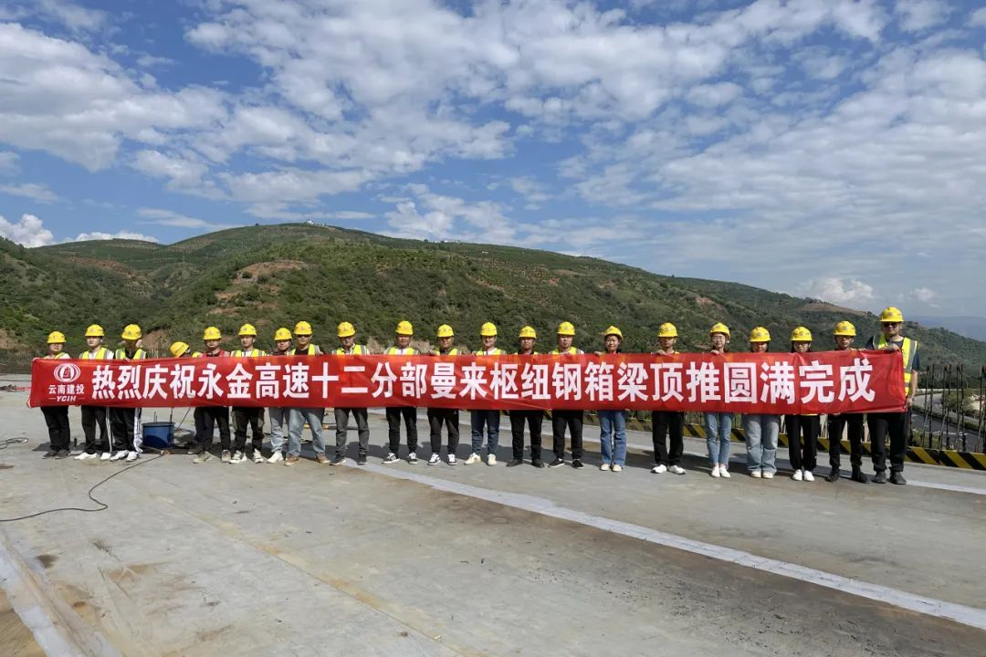 10月17日,永金高速曼来枢纽C匝道桥顺利完成钢箱梁顶推、落梁任务,标志着永金高速曼来枢纽立交跨越、搭接昆磨高速基本完成,为全线建成打下了坚实的基础。