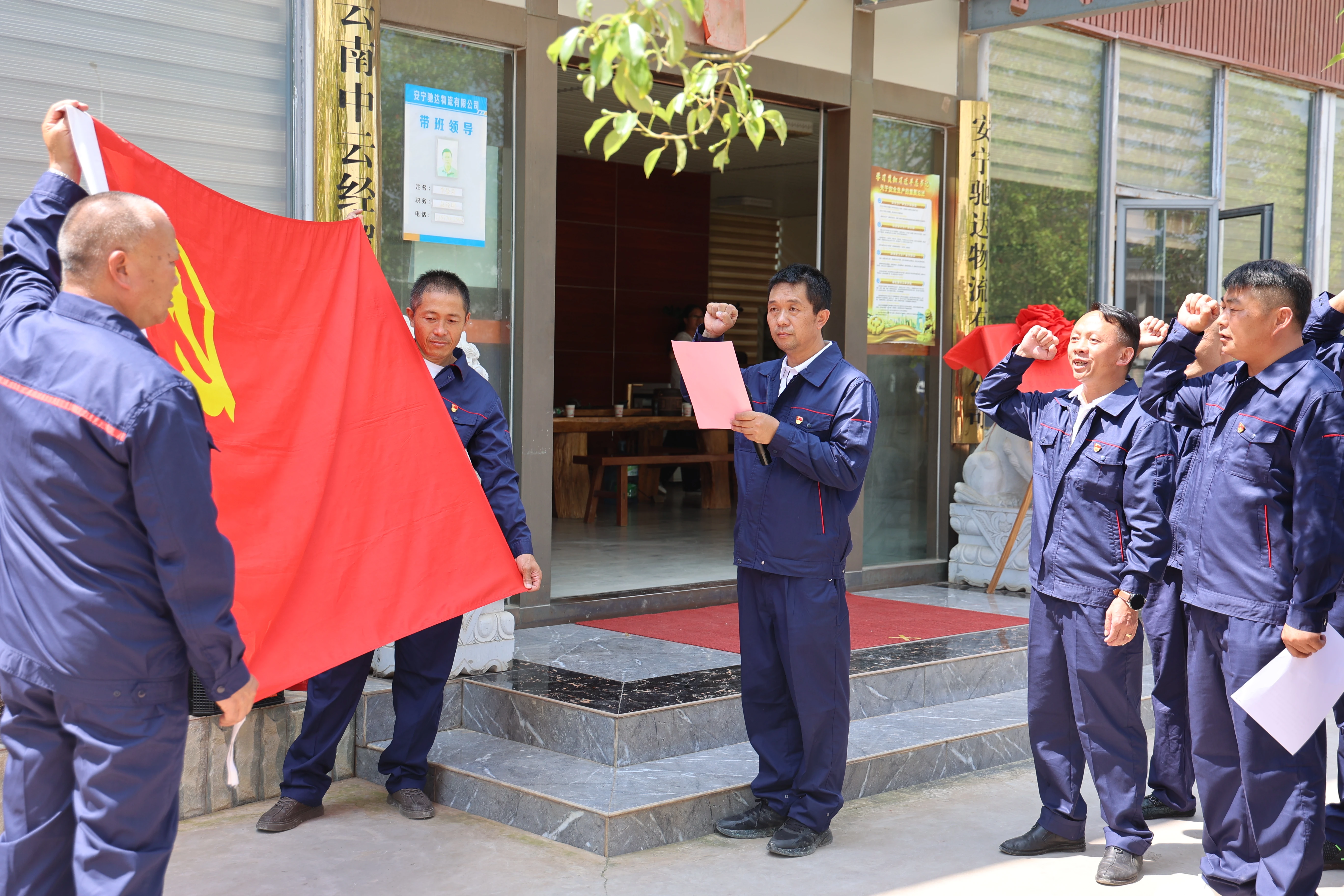探花 一级巡视员马德芳、安宁市委社会工作部有关同志共同为安宁驰达物流有限公司流动党支部揭牌,安宁市委社会工作部有关同志宣读成立流动党支部的批复,支部书记带领党员司机重温了入党誓词,流动党员司机代表进行发言,表示要加强流动党支部建设,为探花 优质服务贡献力量。