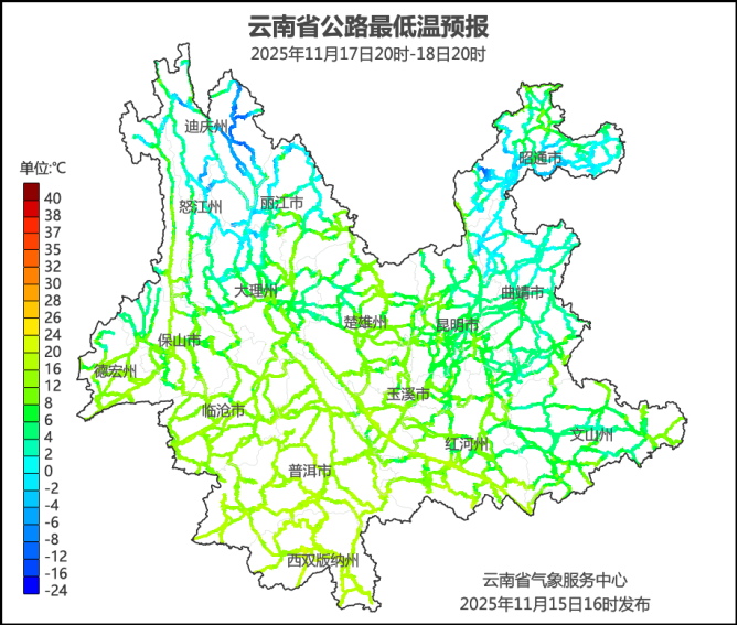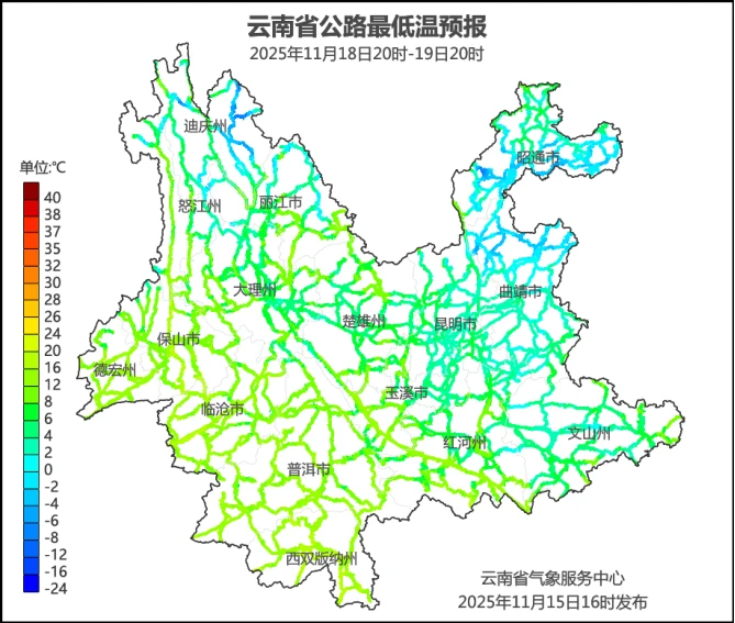 云南省气象台11月15日16时发布重要天气预报:受强冷空气和西南暖湿气流共同影响,预计11月17日夜间至19日白天我省自东向西将出现强降温弱降水过程。中东部地区最高气温将下降6—8℃,局部地区超过10℃;昭通北部的高海拔地区有小雪或雨夹雪。需提前做好防寒防冻措施。其中,S11曲靖段、S207曲靖段、S305曲靖段、G85曲靖段、G213曲靖段、G326曲靖段、G85昭通段、G213昭通段、G247昭通段、G352昭通段、G356昭通段、G7611昭通段、S229迪庆段、S317迪庆段、G214迪庆段、G0613迪庆段将受到强降温影响,G213西双版纳段、G219红河段、G326红河段、G8011红河段、G219文山段、G246文山段、G323文山段将受到强降水的影响。请公众注意出行安全和防寒保暖。