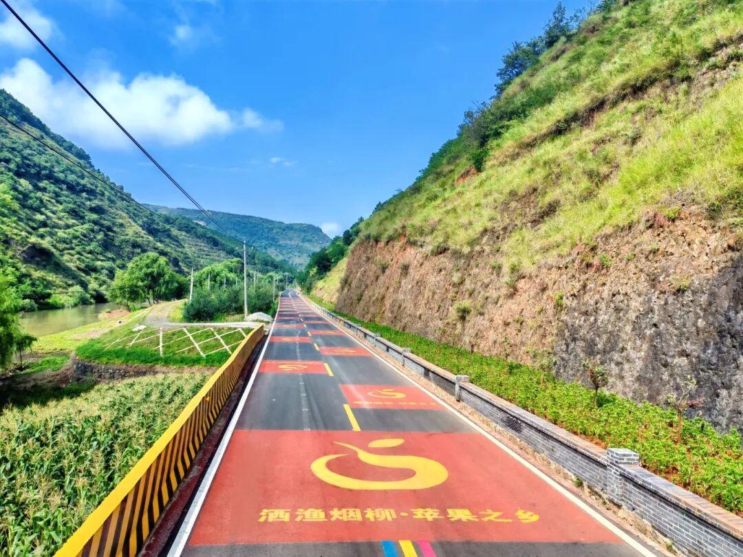 公路两侧因地制宜打造“洒渔烟柳、苹果之乡”“山水大关、筇竹之乡”等景观带,彩色防滑路面融入地方文化元素,成为游客打卡新地标。