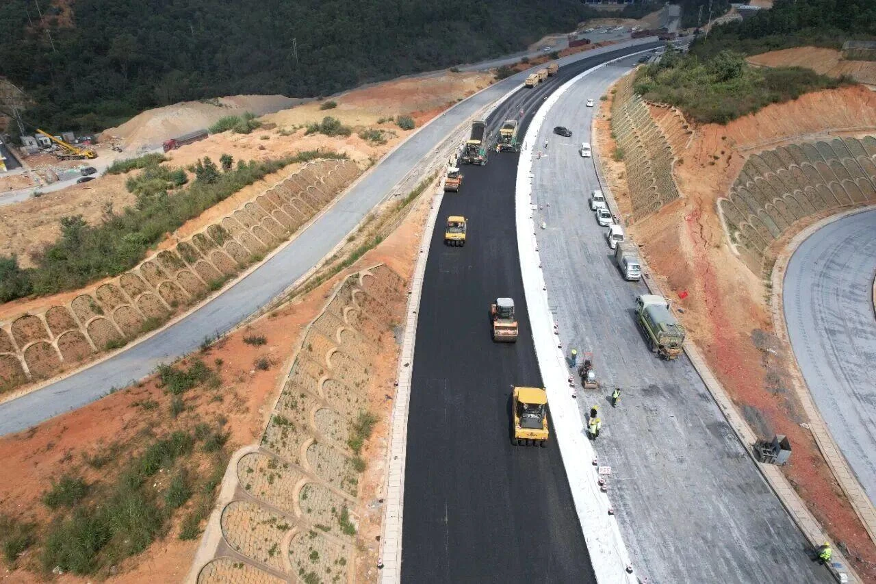 10月24日,峨石红高速公路(玉溪段)项目沥青下面层试验段完成铺筑。