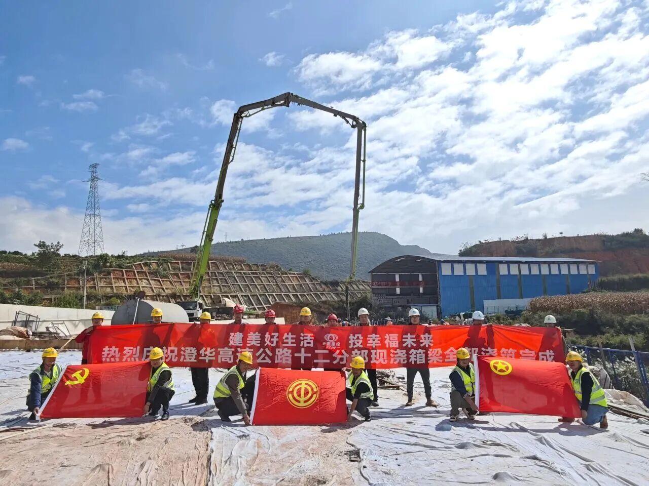 10月25日,澄华高速公路华宁南枢纽H匝道桥现浇箱梁顺利完成浇筑,华宁南互通所有现浇箱梁工程已全部完工。