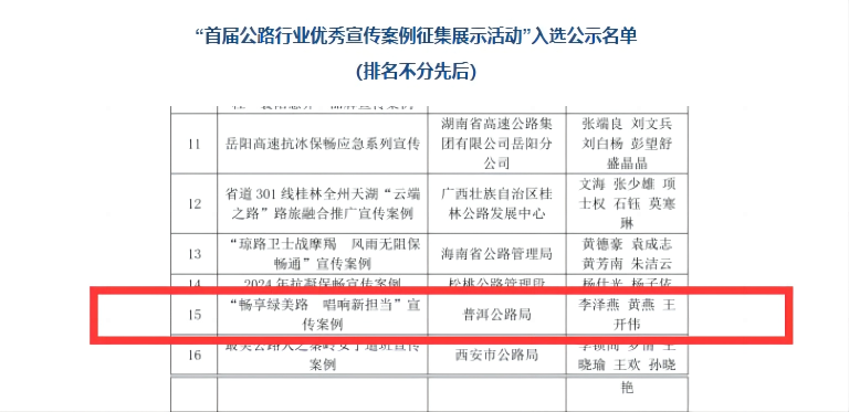 普洱公路局一案例入选全国公路行业优秀宣传案例