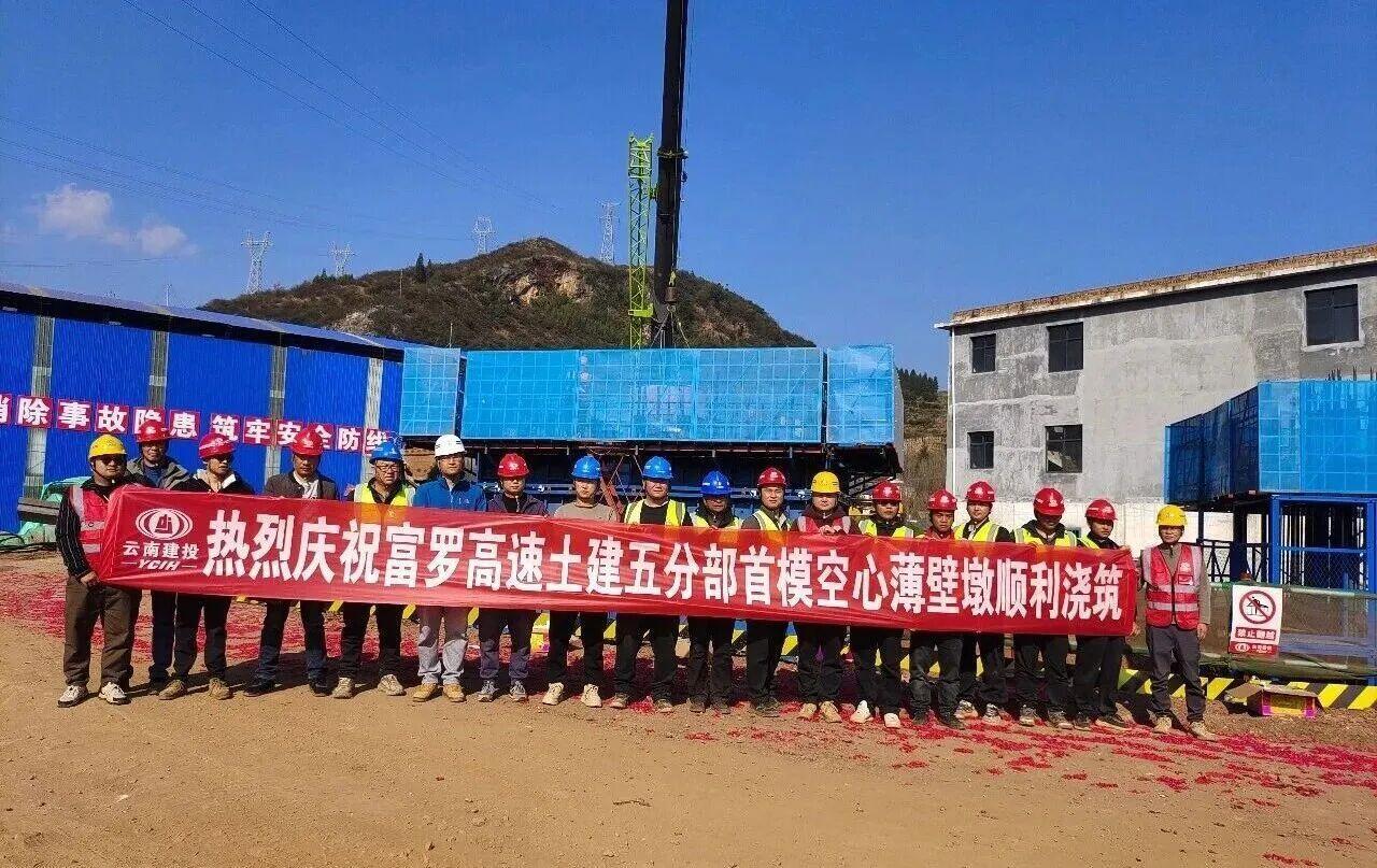 12月14日,富罗高速项目竹园大桥首模空心薄壁墩顺利完成浇筑,标志着该桥梁主体工程建设取得关键性突破,为后续墩身施工及梁片架设工作奠定坚实基础。