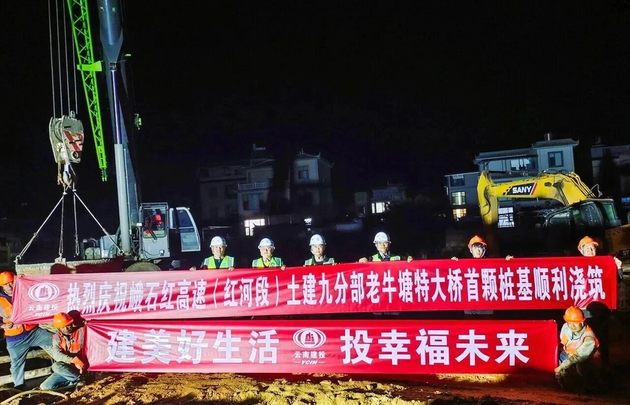 12月7日,河马高速公路(文山段)项目第100颗桥梁桩基顺利完成浇筑,提前7天达成百桩目标。