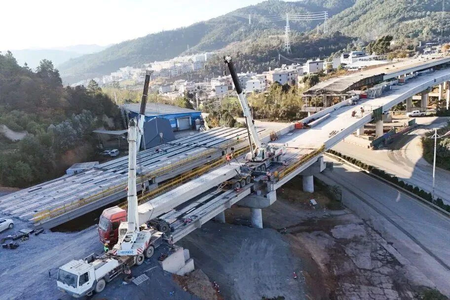 12月10日,随着墨江枢纽主线4号桥最后一片梁板精准落位,碧双高速公路主线梁板架设工程宣告顺利完成,标志着项目建设取得阶段性进展,项目建设进入最后冲刺阶段。