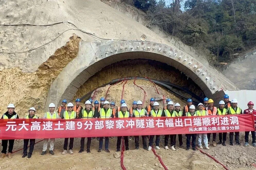 12月12日,元大高速公路项目土建4-1分部上庄隧道右幅顺利贯通,成为全线第一座实现双幅贯通的隧道。