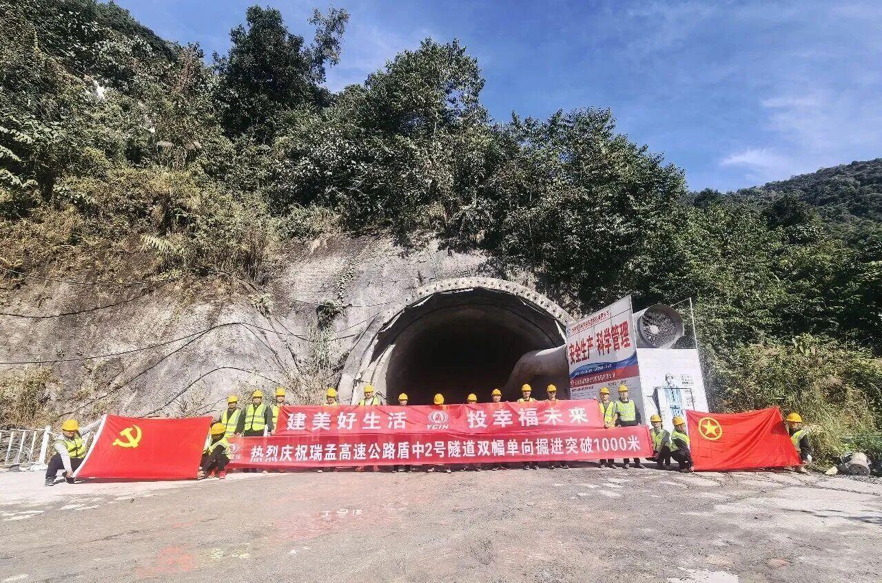 12月8日,瑞孟高速盾中2号隧道左右洞掘进顺利突破1000米。