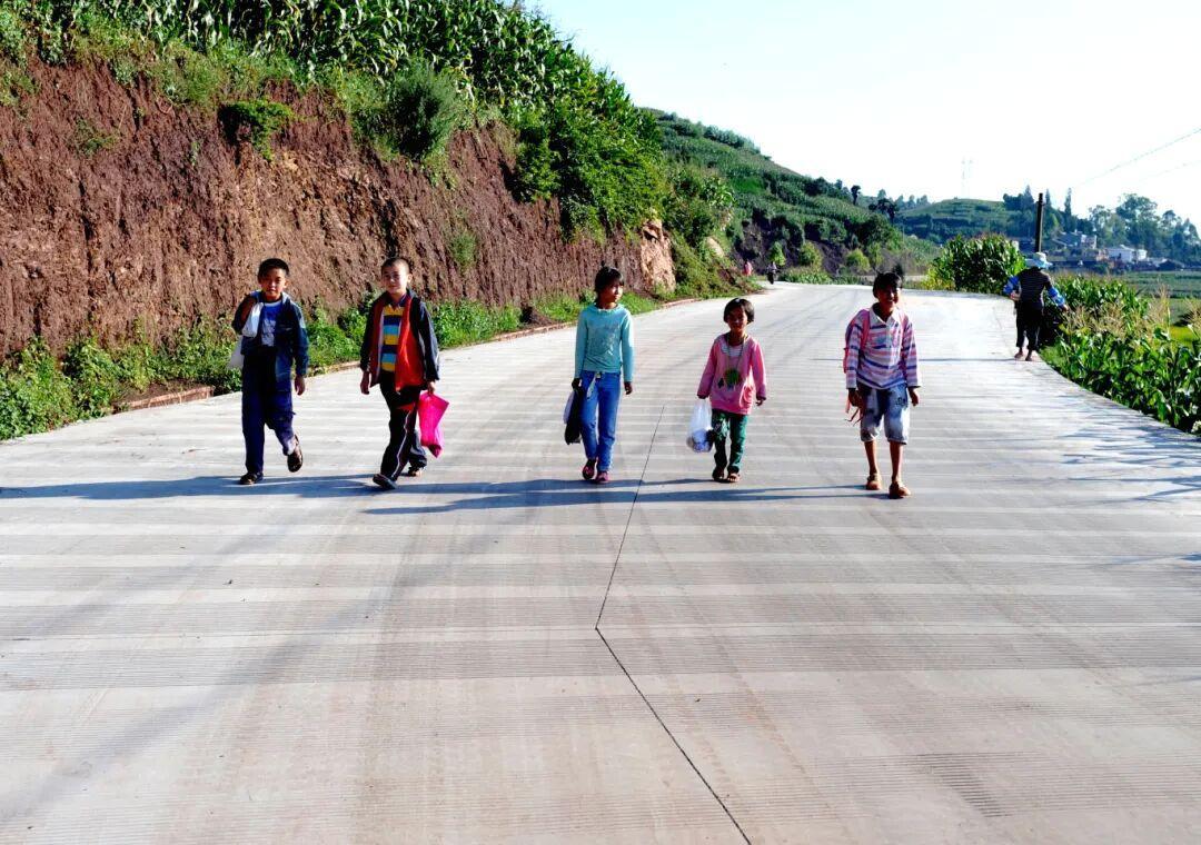 晨曦微露,炊烟升起,孩子们背着书包沿着宽阔的公路走向学校,村民们迎着朝阳开始一天的劳作,老人们则坐在村口闲聊着家常。