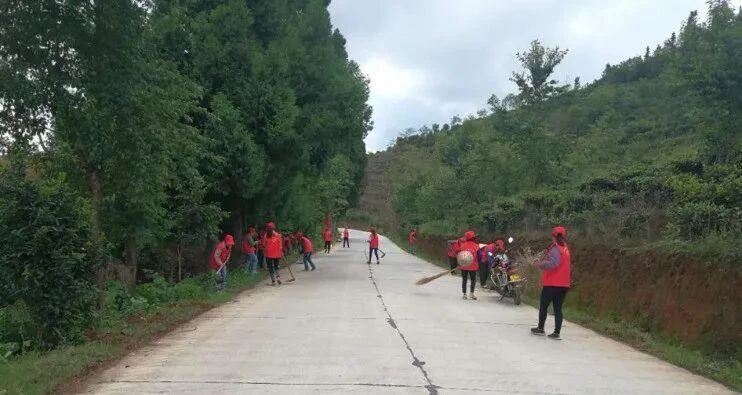 保山市昌宁县明德村,志愿者护路队在开展日常维护
