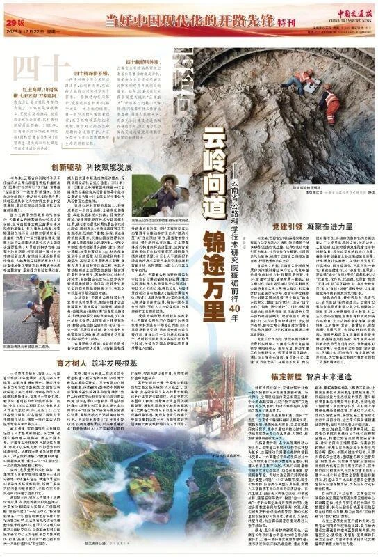 从红土高原走向更广阔的天地,云南省公科院的科技创新之路,正与加快建设交通强国的宏伟蓝图同频共振,向着更安全、更畅通、更智慧、更美丽的未来笃定前行,为谱写中国式现代化云南篇章贡献更大的科技力量。