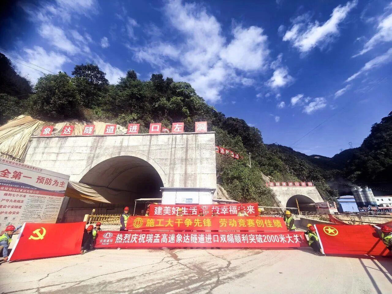 12月22日,瑞孟高速公路象达隧道进口端双幅掘进顺利突破2000米大关。