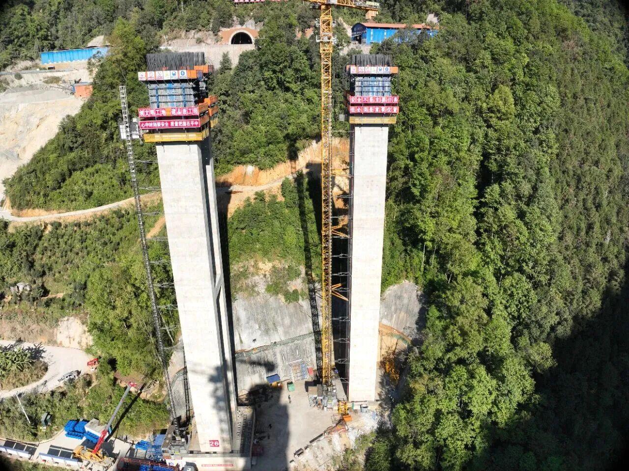 芒市北互通主线3号桥为连续刚构桥,其中四个主墩采用双肢薄壁空心墩结构。此次封顶的右幅23#主墩墩高77米,横桥向宽6.55米、顺桥向宽2.5米,是全线首个完成封顶的高墩,为主梁挂篮悬臂浇筑施工奠定了坚实基础。