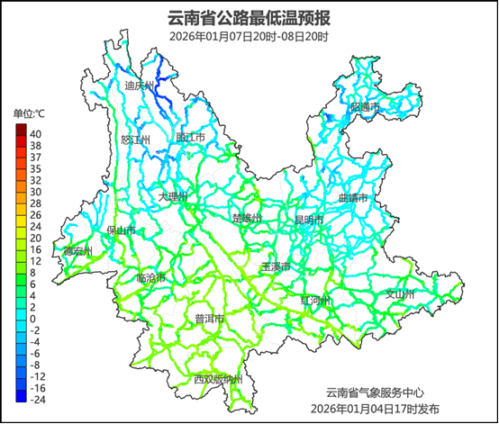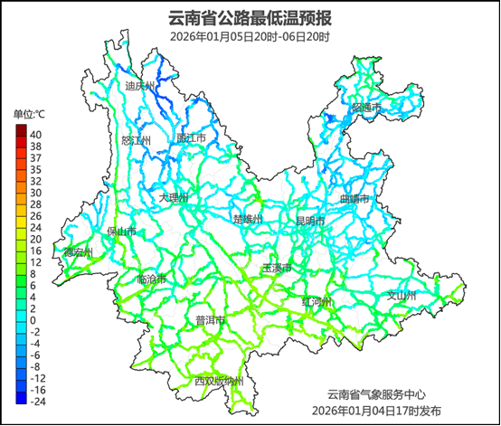 云南省气象台2026年1月4日17时发布重要天气预报:受冷空气影响,预计1月5日夜间至8日,我省中东部地区将先后出现强降温弱降雨(雪)天气过程,最高气温下降6—8℃,局部地区下降超过10℃;过程期间,中东部将出现持续低温阴冷天气,东北部的高海拔地区有小到中雪局部地区大雪,东部的高海拔地区有雨夹雪,其中G85寻甸至大关段、G56马龙至宣威段、G352昭通至威信段、G56嵩明至宣威段、G60嵩明至富源段等路段将会出现道路结冰,请公众出行注意行车安全和防寒保暖。