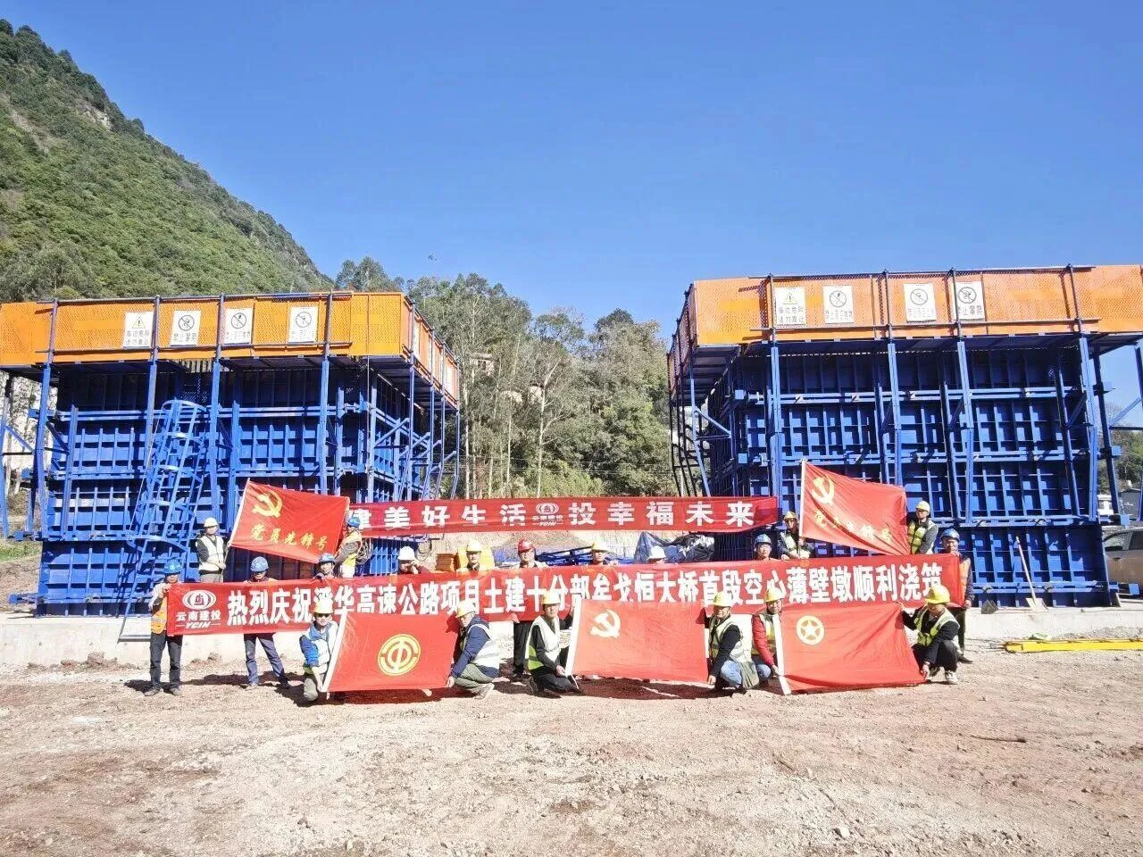 2025年12月29日,澄华高速的重点控制性工程——矣戈恒大桥顺利完成首段空心薄壁墩浇筑。