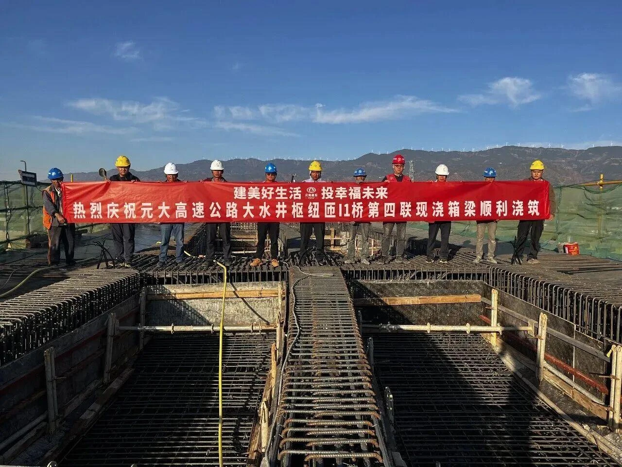 2026年1月1日,元大高速公路土建1分部顺利完成大水井枢纽互通匝I1号桥第四联现浇箱梁浇筑。