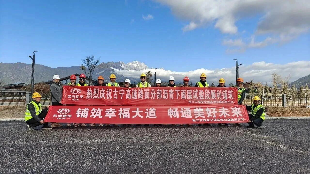 12月30日,丽江古宁高速公路项目沥青中面层试验段顺利铺筑完成。