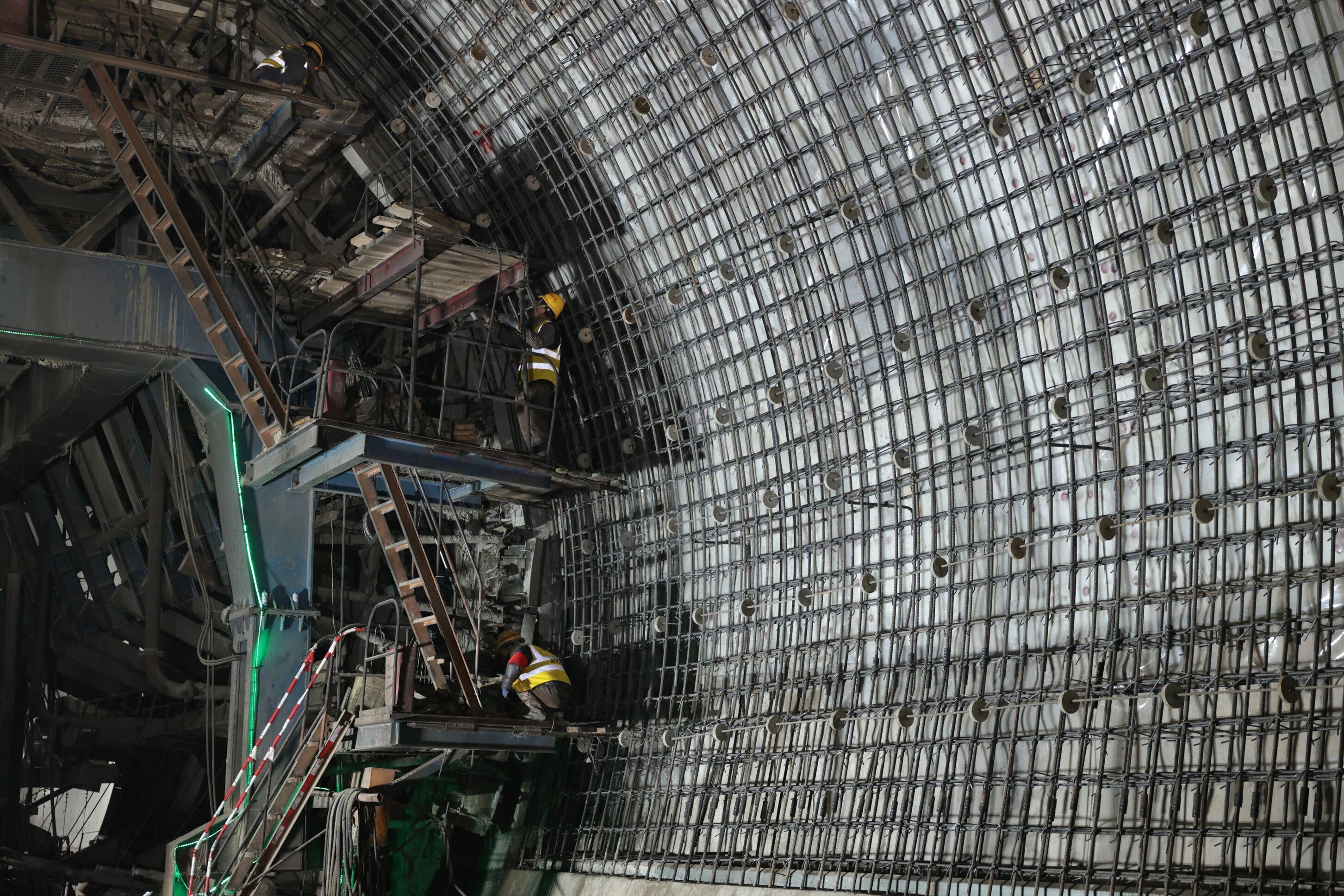 目前,全线建设已进入攻坚冲刺阶段,日均投入施工人员1.1万人次、大型机械设备1300台套,全力推进隧道工程、无砟轨道和站后工程建设。