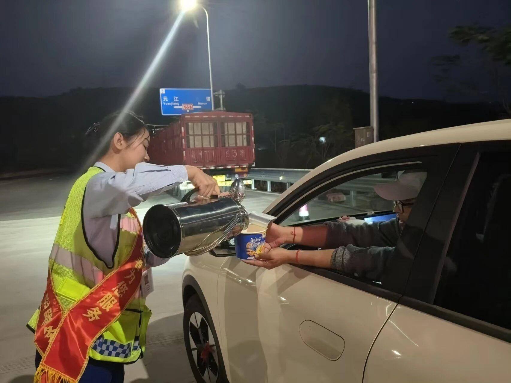 从凌晨的寒夜到深夜的星光,建投集团各高速站点的工作人员始终坚守岗位,把便民服务做到司乘心坎上,让春运旅途既有“速度”更有“温度”。一杯热水、一句问候,是高速路上最朴素也最暖心的关怀:永金高速东峨收费站为长途奔波的司机递上温热的开水,驱散一路疲惫;永大高速三潭收费站看到连夜赶路的货车司机,主动送上热水,让冬日归途暖意融融;元蔓高速南洒收费站收费班长为想要泡泡面的司乘贴心备好热水,一句“长途奔波辛苦了”,温暖了归乡人的心房。