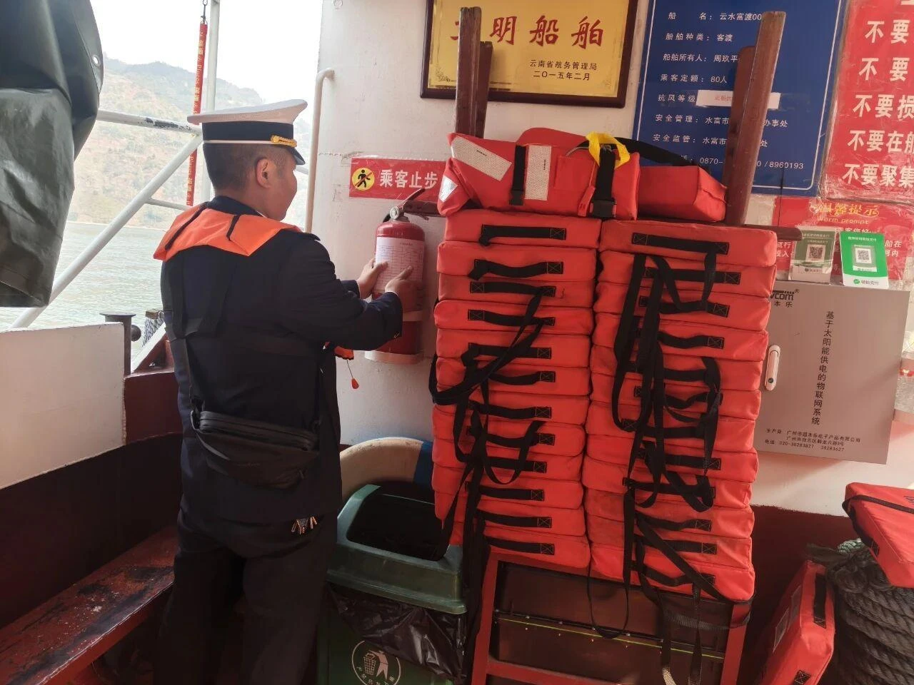针对春节期间船舶连续作业、易发疲劳损耗的特点,水富市地方海事处关口前移,每日清晨派驻2名执法人员对客船进行全覆盖“体检”。严格对照《船舶安全检查记录表》,逐项核查消防、救生、动力及应急通道等关键环节,落实“一船一档”动态管理,坚决杜绝船舶“带病”运营,确保船舶适航、船员适任。